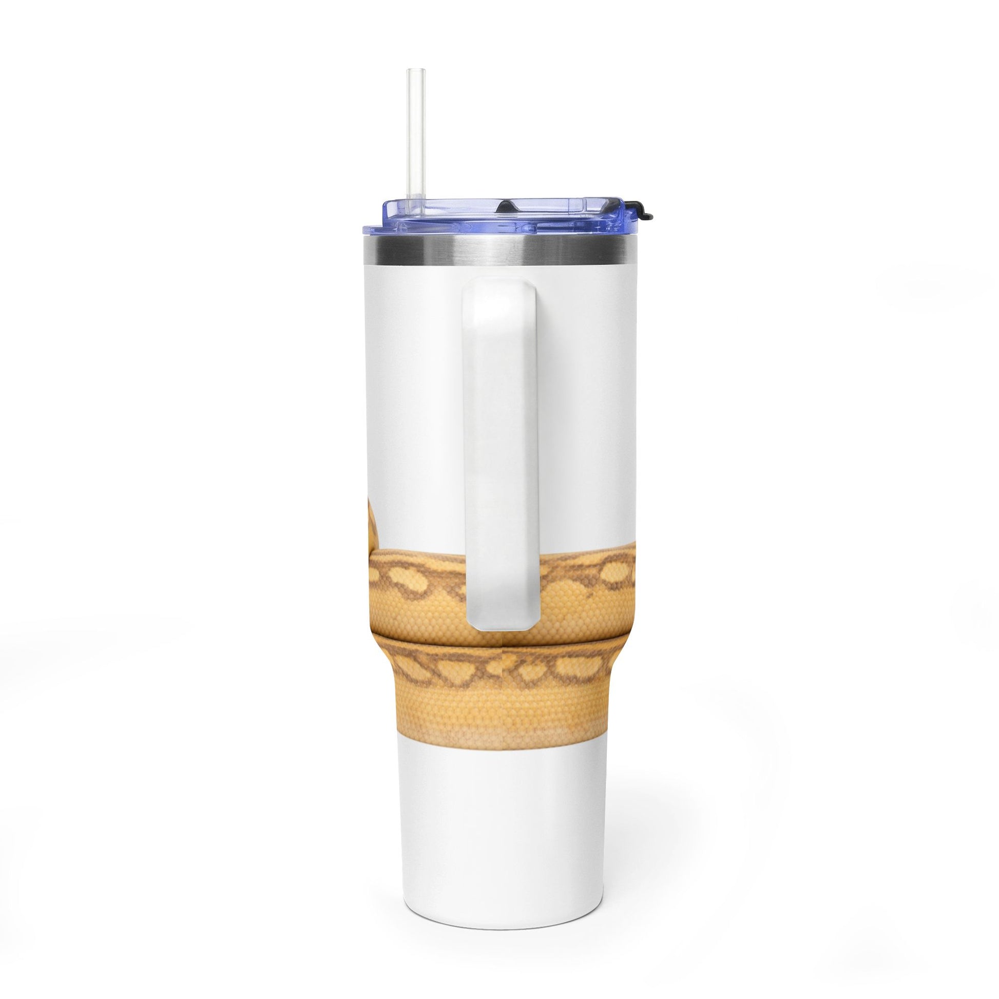 It feels playful and quietly bold the kind of piece a reptile lover reaches for during long drives, early morning commutes, or desk days that need a small burst of charm. The snake's smooth curves follow the tumbler's silhouette, bringing a tactile sense of companionable warmth to your drinkware.